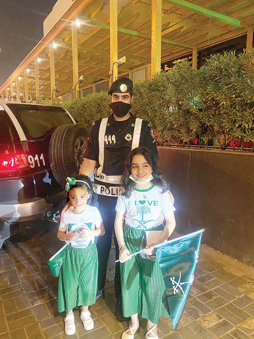 وتقول الطفلة لجين العيس: أنا سعيدة بهذا اليوم الذي نحتفل فيه بوطننا فالوطن يعطينا كل شيء وأنا أحب وطني وافتخر به وأحب الملك سلمان.