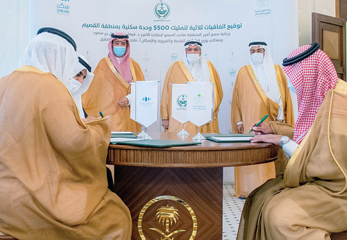 ووقَّعت الاتفاقية الأولى بين وكيل وزارة الشؤون البلدية والقروية والإسكان للإسكان التنموي المهندس أحمد بن علي القرعاوي، ونائب رئيس مجلس الأمناء بمؤسسة الإسكان التنموي الأهلية «سكن» الدكتور إبراهيم السعدان، والمدير التنفيذي لجمعية الإسكان الأهلية بالقصيم عبدالله الخليوي لتوفير 4500 وحدة سكنية بالمنطقة، فيما وُقّعت الاتفاقية الثانية مع رئيس جمعية البر الخيرية «خير» بعنيزة الدكتور صالح الدامغ، لتوفير 1000 وحدة سكنية بالمحافظة.