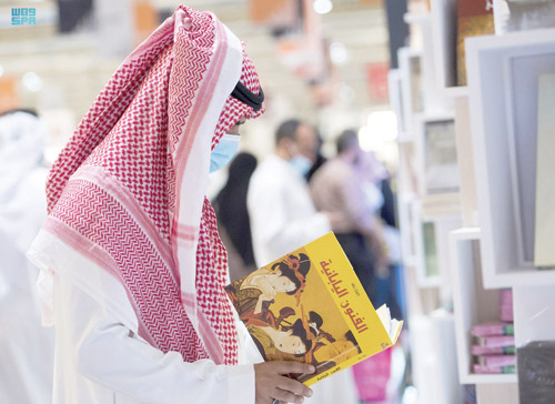 وتعرض مكتبة الملك عبدالعزيز العامة في «الجادة الثقافية» 30 مخطوطة و10 عملات و5 وثائق و5 كتب نادرة، فيما يعرف نادي معكال الزوّار بالمطبوعات العربية النادرة.