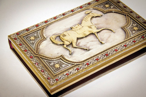 - يتوسط الغلاف صورة للحصان العربي، وهي من رسوم الكونت جفوسكي وتوجد نسخة منها ضمن صفحات المخطوطة.