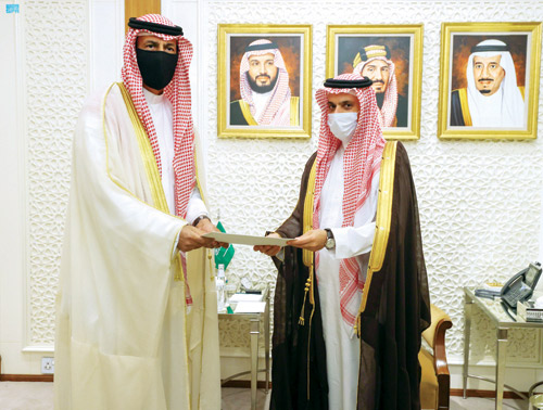 تلقى صاحب السمو الملكي الأمير محمد بن سلمان بن عبدالعزيز ولي العهد نائب رئيس مجلس الوزراء وزير الدفاع -حفظه الله- رسالة خطية من أخيه صاحب السمو الشيخ مشعل الأحمد الجابر الصباح ولي عهد دولة الكويت، تتعلق بالعلاقات الأخوية والروابط التاريخية الراسخة التي تربط البلدين والشعبين الشقيقين وسبل تعزيزها وتنميتها في المجالات كافة. وتسلم الرسالة صاحب السمو الأمير فيصل بن فرحان بن عبد الله وزير الخارجية، خلال استقباله في ديوان الوزارة بالرياض أمس الشيخ علي الخالد الجابر الصباح سفير دولة الكويت لدى المملكة. حضر الاستقبال وكيل وزارة الخارجية للشؤون السياسية والاقتصادية السفير عيد الثقفي.