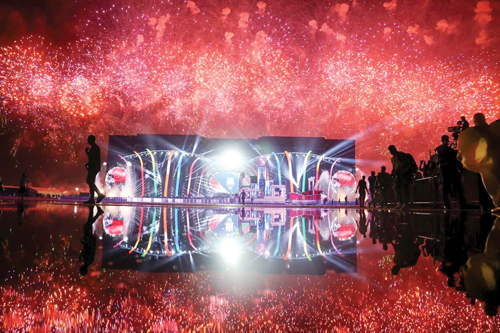 أطلق معالي المستشار رئيس مجلس إدارة الهيئة العامة للترفيه الأستاذ تركي بن عبد المحسن آل الشيخ مساء أمس فعاليات الموسم الثاني لموسم الرياض (تخيل أكثر) بحفل استثنائي حضره العديد من الشخصيات البارزة وجمهور ضخم وصل إلى أكثر من 750 ألف شخص، وتابعه الملايين عبر البث المباشر في عدد من القنوات التلفزيونية والمواقع والحسابات الإلكترونية والصحافة. وقد بدأ الحفل بالسلام الملكي ثم ألقى آل الشيخ كلمة تقدم فيها بالشكر والعرفان لمقام خادم الحرمين الشريفين الملك سلمان بن عبد العزيز، ولسمو ولي العهد عراب الرؤية، والقائد الملهم، على دعمهم غيرالمحدود لقطاع الترفيه ولموسم الرياض، وقال معاليه الموسم الأول كان شعارنا «تخيل»، والموسم الثاني شعارنا تخيل أكثر، صدقتوا وأكيد بتصدقون، ما دام عندنا قيادة ملهمة دفعت كل سعودي إنه يرتفع عنده حد الطموح ويحقق الأحلام، وخاطب معالي المستشار الجمهور قائلا «مساء الخير، وحشتونا..» وأهلا وسهلا بكم في موسم الرياض». عقب بدء برنامج الافتتاح الذي سجل الموسم في أول أيامه نجاحًا أبهر العالم من خلال العروض والأزياء والموسيقى، التي شكلت أيقونات لعبور الترفيه السعودي إلى الكرنفالات العالمية، حيث تضمن عرضًا لأكثر من 2760 طائرة درون، شملت عروضها صورًا لمقام خادم الحرمين الشريفين الملك سلمان بن عبد العزيز آل سعود، وولي عهده صاحب السمو الملكي الأمير محمد بن سلمان، كما رحبت بالحضور بعدد من اللغات العالمية، إضافة إلى عرضها شعارات مناطق وفعاليات موسم الرياض هذا العام. كما شمل الحفل عددًا من الفعاليات المحلية والعالمية، حيث انطلقت من أرض المسيرة عروض نارية ضخمة أنارت سماء الرياض، بالتزامن مع مواقع أخرى من المدينة، أبرزها: برج المملكة، وبرج المجدول، إضافة إلى عدد من العروض الحية، وعروض رقصة السامري، وعروض العربات، وعرض الرجل الطائر. وعكست فعاليات الموسم في أول أيامه روح المهرجان الذي احتضن عددًا من الفرق التنكرية المزينة بالألوان، والموسيقى النابضة بالإيقاعات العالمية، وحضور عدد من الشخصيات الشهيرة على مستوى العالم، من أبرزهم المصارع الشهير أندرتيكر. وامتزج افتتاح موسم الرياض 2021 بروائع الفن العالمية، التي اجتمعت في أرض المسيرة عبر 88 فود ترك، جمعت أنواع الأطعمة من مختلف أنحاء العالم، فضلًا عن خدمات الرعاية الصحية، والعيادات الطبية المتنقلة. واختُتمت فعاليات اليوم الأولن موسم الرياض 2021 بحفلة الفنان «بيتبول» التي انتظرها عدد كبير من الجماهير المحلية والعالمية.