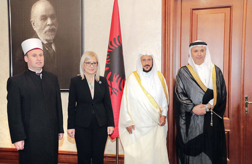 من جانبه، أكد وزير الشؤون الإسلامية حرص المملكة على بناء وتوثيق روابط الصداقة والتعاون مع ألبانيا فيما يتصل بالشأن الإسلامي. ونقل تحيات خادم الحرمين الشريفين وسمو ولي عهده الأمين -حفظهما الله- لرئيسة البرلمان وتمنياتهما الصادقة للحكومة والشعب الألباني بمزيد من التقدم والرقي والعيش بسلام وأمان. وقال: إن المملكة بقيادتها الرشيدة تطمح لمد جسور التواصل وتعزيز التعاون الذي يحقق مصلحة البلدين الصديقين، مشيراً إلى أن المملكة تحمل رسالة واضحة هي إبراز سماحة الإسلام ومحاسنه وجماله ووسطيته واعتداله.