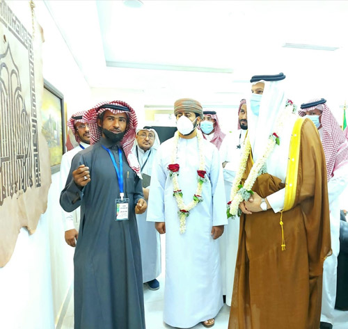 افتتح سمو الرئيس الفخري المعرض وقلد بعقد من الفل الجيزاني كتكريم من الفلكلور الجيزاني، وبعد جولة على الأعمال المشاركة والحوار مع الفنانين والفنانات، ابتدأت الأمسية الثقافية بالسلام الملكي وآيات من القرآن الكريم.