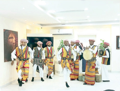 وصاحب المعرض عرض لفرقة فلكلورية شعبية من منطقة جازان.