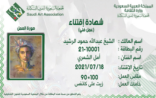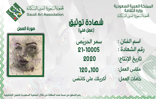 وتعطى هذه الشهادة للفنان التشكيلي من أعضاء الجمعية توثيقاً لعمله الفني.