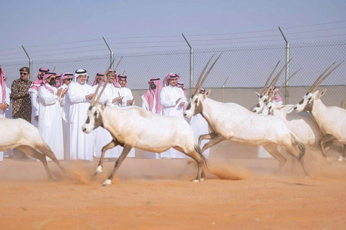 تفقد صاحب السمو الملكي الأمير عبدالعزيز بن سعود بن نايف بن عبدالعزيز وزير الداخلية رئيس مجلس إدارة هيئة تطوير محمية الملك عبدالعزيز الملكية أمس المحمية، كما تم إطلاق عدد 70 من ظباء الريم، و 20 من المها العربي ( الوضيحي ). ويأتي إطلاق هذه الأنواع من الكائنات الفطرية ضمن إطار جهود المحمية بالتعاون مع المركز الوطني لتنمية الحياة الفطرية والقوات الخاصة للأمن البيئي، في إعادة توطين الحيوانات المهددة بالانقراض، ولما لها من دور كبير في النظام البيئي، كما أنها تمثل جزءًا من التراث الحضاري والتراث الطبيعي للمملكة وتسهم في إعادة التوازن البيئي.