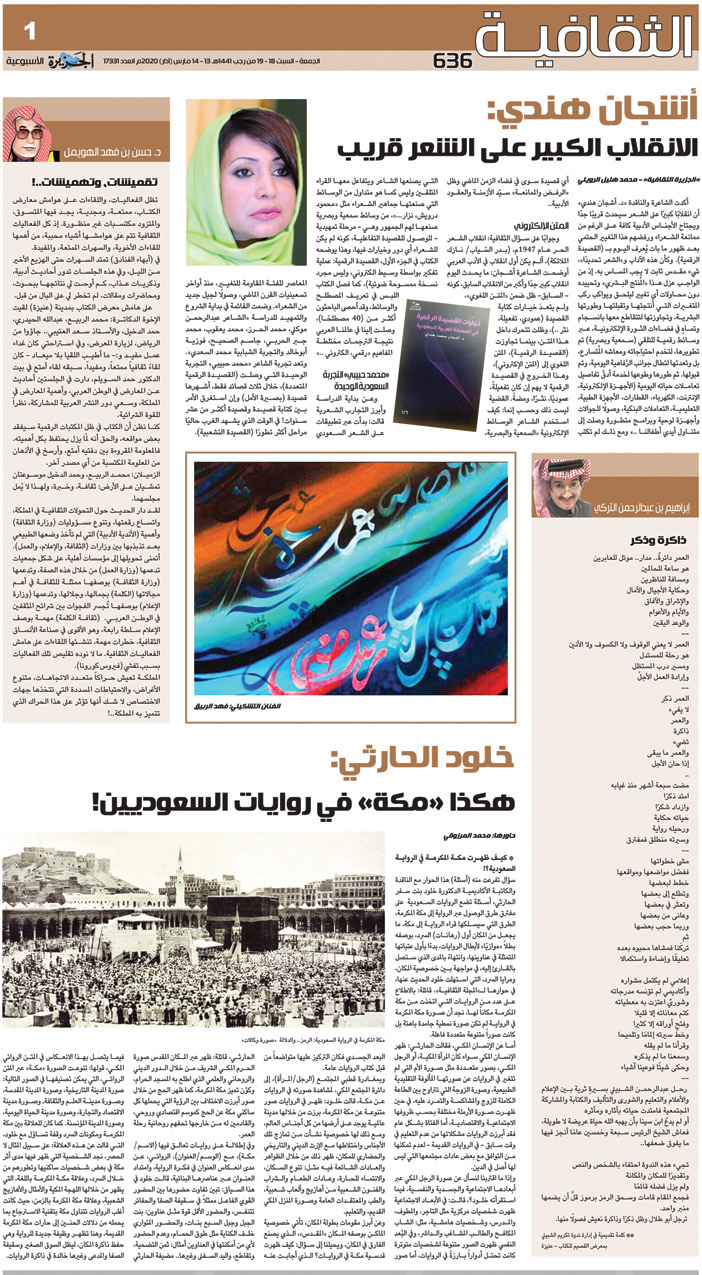 ملحق الجزيرة الثقافي أو المجلّة الثقافيّة، سمِّها ما شئت، فليس هذا هو المهمّ، وإنّما المهمّ هو الإشارة إلى حجم الفائدة التي ستتحصَّل عليها إن تصفَّحْت أوراقَها وكان لديك الجَلَد لتتبُّعِ كلِّ حرفٍ دُوِّنَ فيها؛ فغناها لا يسمح لك بتفويتَ أيٍّ من هذه الحروف التي اشتغل عليها صفوةُ المثقَّفين، وجهابذةُ الأدباء، وعمالقة الكُتّاب من السّعوديّة وخارجها. إنَّ أعدادها السبعين قد حفَلَت بأعذبِ القصائد، وأحسنِ الْقَصَصِ، وأقوى المقالات وأجرئها... فلقد آلت على نفسها منذ تاريخ صدورها في التاسع والعشرين من شهر ذي الحجّة لعام ألفٍ وأربعمئةٍ وثلاثةٍ وعشرين للهجرة - الموافق الثالث من شهر مارس (آذار) لعام ألفين وثلاثة للميلاد، أن تكونَ موئلًا للإبداع، وحاضنة للمبدعين، ومتنفَّسًا لكلّ من يبحث عن الكلمات الرصينة وينفر من الإسفاف الفكريّ واللّغويّ؛ نتحلَّق حولها في صبيحة كلِّ يوم جمعة - في موعدها الجديد - نبتسم ونحن نعانق رائحةَ أوراقِها وحبرِها، ونكاد نطبع قبلةً على صفحتها الأولى، قبل الشروع في تصفُّحها.