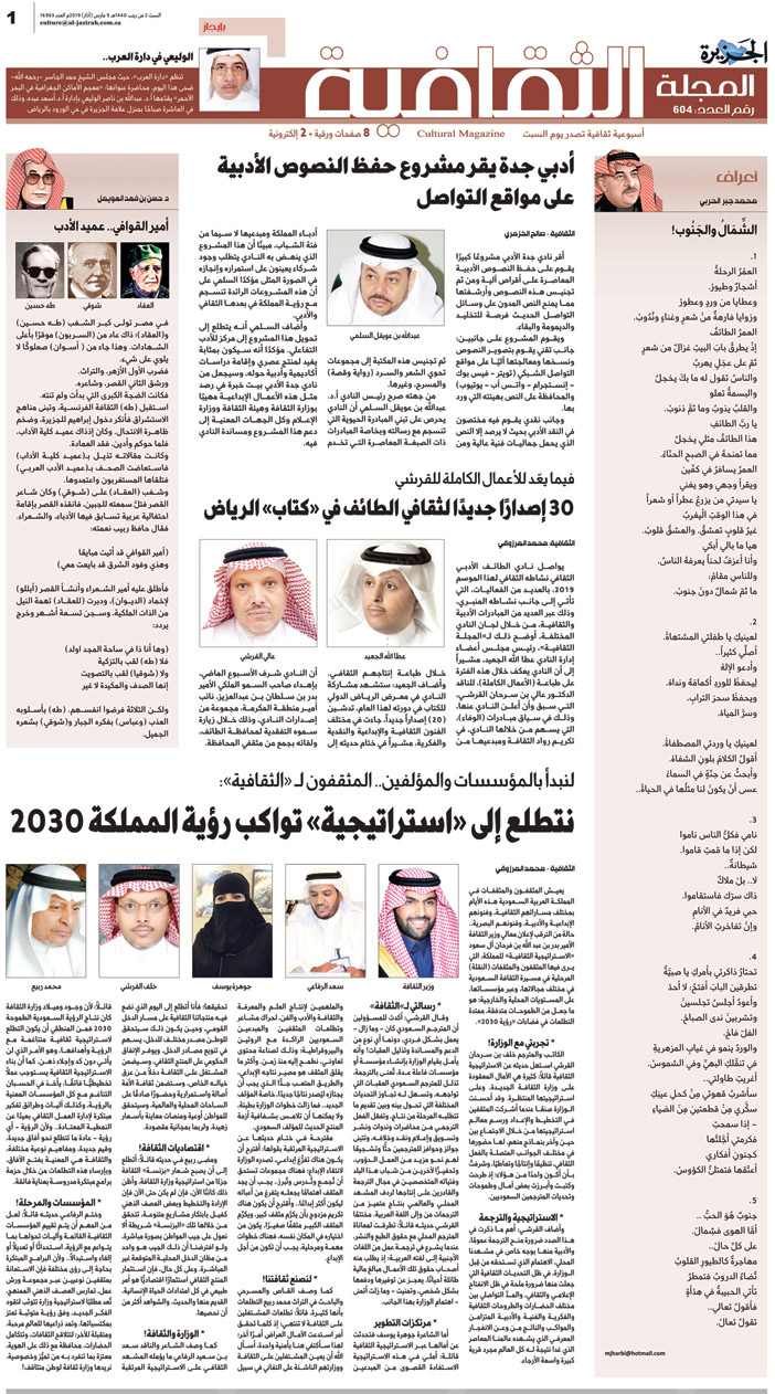 ترامَت بي جَولةٌ شاسِعة، في مِنصَّة «تُويتر» الواسعة. فطُفتُ أجوبُ حساباتِ المجلَّات، وأجولُ بين الصَّفَحات والمقالات. وأنا أتصيَّدُ الكلمةَ الباسِقة، وأنتخِبُ اللُّغةَ السَّامِقة. وأستمتِعُ بالأدبِ المفيد، وأتذوَّقُ الأُسلوبَ النَّضيد. وبعدَ مَخرٍ فيما تيسَّر من المجلَّات العربيَّة، بلغتُ حسابَ الجزيرةِ الثَّقافيَّة. فألِفتُها بينَ أخواتها كالعَروس، فيها مِن الفرائد والدُّروس، ما تَشرَئِبُّ إليه النُّفوس، وتُبذَلُ له الفُلوس. مجلَّةٌ ]ذاتُ الأكمام[، بعيدةُ المرام، تَتخيَّرُ مِن اللُّغة الفِخام، وتُؤثِر في الأدبِ العِظام. مجلَّةٌ أيُّ مجلَّة، تحفِلُ من كلِّ علمٍ وفنٍّ بما جَلَّ. بحوثٌ وكُتُبٌ ومقالات، وإعلامٌ ونُصوصٌ وحِوارات، وتقاريرُ وإبداعاتٌ وتحقيقات. أُسبوعيَّةُ الصُّدور، يوميَّةُ الحضور. تبدأ بالتَّنقير، وتختم بالتَّنوير، وبين ذا وذا تحضير وتزبير وتسبير وتحرير وتحبير. تلك سَبعةٌ كاملَة، فجزى اللهُ الجهودَ النَّاصبةَ العاملَة. ]تَسُرُّ النَّاظرينَ[ صباحَ الجُمَع، وتَبهَجُ القُرَّاءَ باللُّمَّع. فقادني الفُضول، إلى سُؤال أستاذِنا أبي أوسٍ بالقول: يا شيخَنا الشَّمسان، هل مِن وسيلةٍ أو عنوان؟ يُوصلني إليهم، فأنهَل ممَّا لديهم. لعلَّي أحظى بمقالةٍ أو كِتابة، فأذوقَ من ذلك الشَّهْدِ رُضابَة. مع قصور الباع والبضاعة، وقِلَّة أدواتِ الصِّناعة. فأكرمني بـ»إيميل» الدُّكتور إبراهيم التُّركيّ، فطِرتُ جَذَلًا بالعربيّ والتُّركيّ. راسلتُه مِن فَوره، مُستعلِمًا بشَوره. فرحَّب بأدبٍ منفلوطيٍّ رفيع، واستبشر بأُسلوبٍ رافعيٍّ سهلٍ مَنيع. ألفيتُه اسمًا مُفرَدًا، مُسمَّاهُ جمعٌ مُحتشِدًا. توسَّل إليه بإدمانِ السَّهَر، وكَثرةِ النَّظَر، وإعمالِ الفِكَر. فتذكَّرتُ قولَ شاعرنا فيما مضى، مُرتجيًا أستاذَنا أن يرضى: