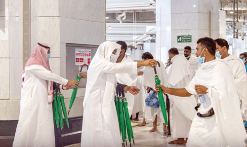 وزعت الرئاسة العامة لشؤون المسجد الحرام والمسجد النبوي امس، 8000 مظلة على المعتمرين في صحن المطاف والمصلين وعلى العاملين في المسجد الحرام، وذلك ضمن مبادرة «مظلتك بين يديك» أحد برامج حملة الرئاسة العامة التي أطلقتها بعنوان: «خدمة معتمرينا شرف لمنسوبينا»، التي تهدف إلى عدة مبادرات وبرامج لتوفير أرقى وأفضل الخدمات المقدمة لقاصدي بيت الله الحرام. وتأتي مبادرة «مظلتك بين يديك» لحماية المعتمرين من حرارة الشمس خلال أدائهم الطواف والعاملين في خدمتهم من منسوبي ومنسوبات الرئاسة العامة وأبطال الأمن والصحة والمتطوعين داخل المسجد الحرام وساحاته.
