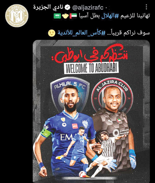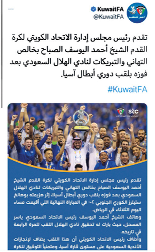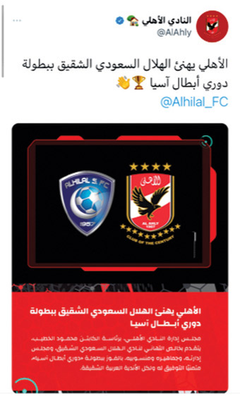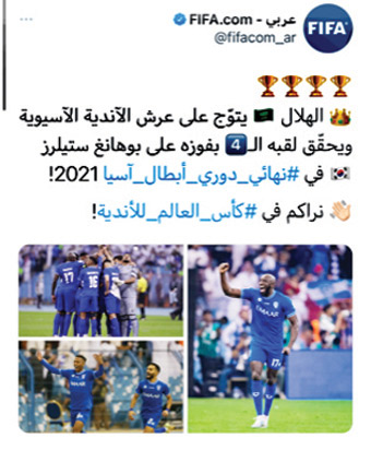 حظي فوز الهلال بدوري أبطال آسيا للمرة الرابعة في تاريخه باهتمام واسع على المستوى العالمي وفي العالم العربي والمحلي، حيث قام عدد من الجهات الرياضية الكبيرة بتهنئة الهلال بلقبه الكبير، وجاء ذلك في تغريدات على تويتر حيث هنأ حساب (FIFA) الهلال بلقبه الرابع لدوري الأبطال، كما جاءات التهاني من أندية عالمية شهيرة مثل مانشستر يونايتد ومانشستر سيتي ويوفنتوس وتشيلسي وكبير أفريقيا النادي الأهلي المصري، وكذلك الاتحاد الكويتي لكرة القدم ونادي الكويت الكويتي، ونادي الجزيرة الإماراتي، كما هنأ رئيس النادي الأهلي السعودي الأستاذ ماجد النفيعي الهلال بالبطولة عبر حسابه الرسمي، وكذلك كان هناك العديد من التهاني من الأندية السعودية من أبرزها الشباب وضمك والفيصلي والرائد والتعاون وأبها والباطن والفيحاء والاتفاق والقادسية.