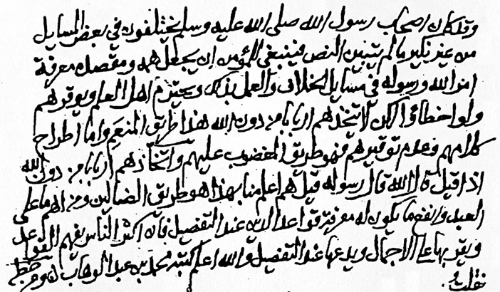 يتكرّر ذكر أسانيد الأصول الخطّيّة لرسائل وأجوبة أئمة الدعوة، كقول الناسخ: (كتبه محمد بن عبد الوهاب ومن خطّ من نقله من خطّ الشيخ محمد نقلت، وذلك آخر سنة 1343هـ)[مجموعة الرسائل والمسائل النجدية (1/ 12)]، وأصله بخطّ قاضي بلدة أشيقر، الشيخ عبد العزيز بن عبد الله بن عامر، قال: (كتبه محمد بن عبد الوهاب ومن خطّه نقلت)[مكتبة شقراء العامة]، ووجدت بعض المنقول بخطّ الشيخ حمد بن عبد العزيز العوسجي، قاضي بلدان سدير، ثم المحمل والشعيب، قال: (قابلته على كتب الشيخ محمد بن عبد الوهاب قدّس الله روحه، فإذا هي كما في الأصل سواء)، ونقله من خطّ الشيخ حمد؛ ابنه الشيخ سعد، ونقله من خطّ سعد؛ الشيخ عبد الله الربيعي سنة 1346هـ [مكتبة الملك سلمان، برقم (3413)، ص26].