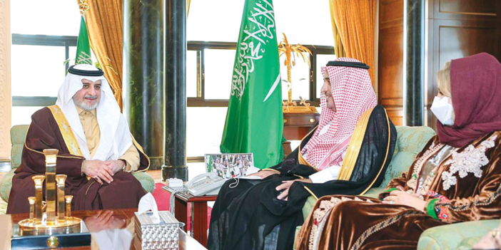 من جهة ثانية التقى سمو أمير منطقة تبوك في مكتبه بالإمارة أمس، معالي نائب رئيس هيئة حقوق الإنسان عبدالعزيز بن عبدالله الخيال يرافقه عضوا مجلس حقوق الإنسان الدكتورة الجوهرة بنت فهد الزامل والدكتورة نورة بنت مزيد العمرو.