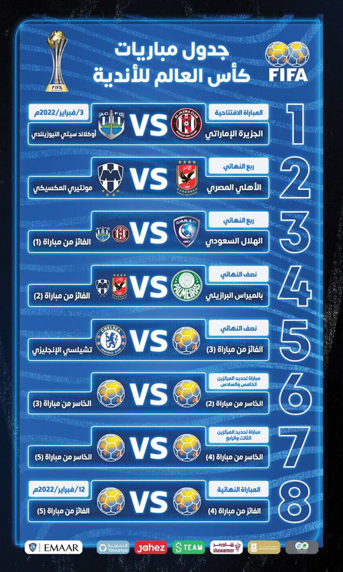 وهذه هي المرة الثانية التي تشهد البطولة مشاركة 3 فرق عربية، وهي: الهلال، والجزيرة، والأهلي، من بينها فريقان من آسيا، بعد نسخة 2019 التي شهدت مشاركة الهلال والترجي التونسي والسد القطري.