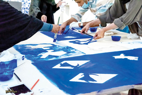 وعلى هامش المعرض أقيمت ورشة فنية تدريبية قدمها الفنان نديم كوفي حضرها عدد من الفنانين التشكيليين ليقدم لهم كوفي أسلوبه وتكنيكه الفني على مدى يومين ليقوم اكثر من 15 فناناً بإنتاج لوحة تشكيلية جماعية بذات أسلوب المعرض واعتمد بها كوفي على مفردات تجريدية تنتجها الصدفة المقصودة ليختار كل فنان مفردة ونظيرها وينفذها على الجدارية الضخمة التي قسمت إلى 16 مستطيلاً متجاورة ولتكون المفردات بتناغم فكري وذات لون واحد تعبر عن إبداعات المشاركين.