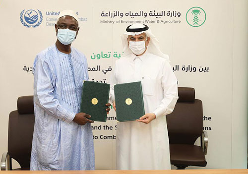 وقع معالي وزير البيئة والمياه والزراعة المهندس عبدالرحمن بن عبدالمحسن الفضلي، اتفاقية تعاون مشتركة مع الأمين التنفيذي لاتفاقية الأمم المتحدة لمكافحة التصحر إبراهيم ثياو.