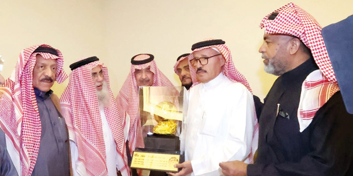 وفي نهاية اللقاء قدم الحكم الدولي السابق دليم القحطاني باسمه وباسم زملائه درعاً تذكارية للأستاذ عبد الرحمن الدهام بهذه المناسبة.