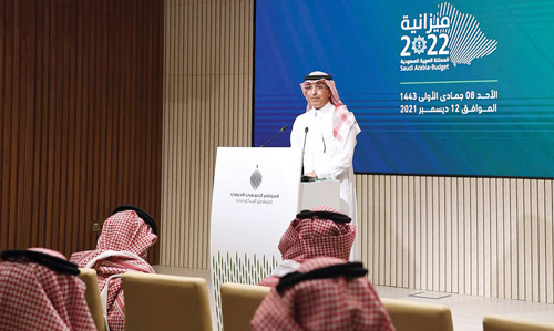 ولفت معاليه إلى أن تقديرات الميزانية لعام 2022م تظهر أن إجمالي الإيرادات سيبلغ 1,045 مليار ريال، بارتفاع نسبته 12.4% عن المُتوقع تحقيقه في عام 2021م، فيما يقدر إجمالي النفقات بحوالي 955 مليار ريال، في حين يتوقع تحقيق فوائض بنحو 90 مليار ريال (أي ما نسبته 2.5% من الناتج المحلي الإجمالي)، مبيناً أن هذه الفوائض سيتم توجيهها لتعزيز الاحتياطيات الحكومية، ودعم الصناديق التنموية وصندوق الاستثمارات العامة، والنظر في إمكانية التعجيل في تنفيذ بعض البرامج والمشاريع الإستراتيجية ذات البعد الاقتصادي والاجتماعي، أو سداد جزء من الدين العام حسب ظروف السوق.