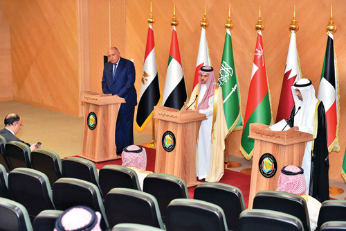 جاء ذلك خلال مؤتمر صحفي عقده سموه مع نظيره وزير خارجية جمهورية مصر العربية سامح شكري، والأمين العام لمجلس التعاون الخليجي الدكتور نايف فلاح الحجرف، بعد الاجتماع الوزاري المشترك لأصحاب السمو والمعالي وزراء خارجية دول مجلس التعاون لدول الخليج العربية ومعالي وزير خارجية جمهورية مصر العربية.