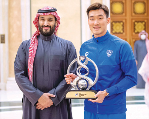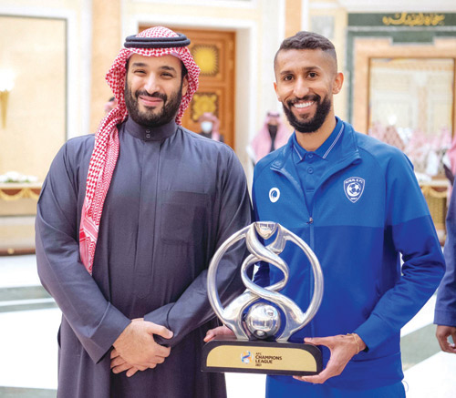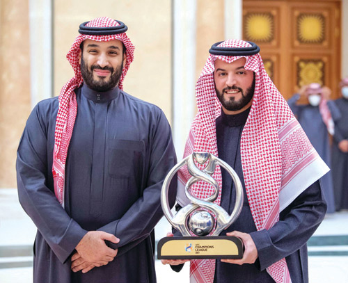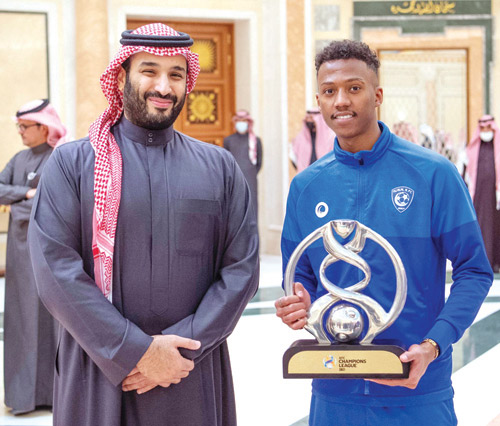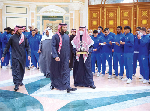 استقبل صاحب السمو الملكي الأمير محمد بن سلمان بن عبدالعزيز ولي العهد نائب رئيس مجلس الوزراء وزير الدفاع، سمو الأمير عبدالعزيز بن تركي الفيصل وزير الرياضة، ورئيس الاتحاد السعودي لكرة القدم، ورئيس وأعضاء مجلس إدارة نادي الهلال، والجهازين الفني والإداري، ولاعبي الفريق لكرة القدم، بمناسبة تحقيقهم بطولة دوري أبطال آسيا 2021 والتأهل لكأس العالم القادم للأندية.