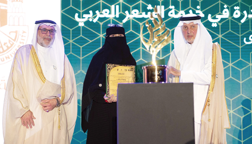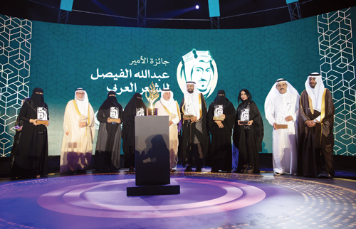 عقب ذلك كرَّم صاحب السمو الملكي الأمير خالد الفيصل معالي الدكتور فهد السماري نظير جهوده الأدبية. كما كُرَّمَ الفائزون في الدورة الثالثة للجائزة وهم الشاعر «عارف حمود الساعدي»، من جمهورية العراق، عن فرع التجربة الشعرية وقيمتها 500 ألف ريال، والشاعرة «جيهان جمعة بركات»، من جمهورية مصر العربية، التي فازت بجائزة الشعر المسرحي عن مسرحيتها «ليلى الأخيلية» وقيمتها 200 ألف ريال، والشاعر «إبراهيم أحمد حلوش»، من المملكة العربية السعودية، عن أوبريت «نبض الأرض»، في مجال القصيدة المُغنَّاة وقيمتها 200 ألف ريال، وأخيرًا، جامعة أم القرى عن موسوعة الشعر العربي في المملكة العربية السعودية، وبلغت قيمة الجائزة 100 ألف ريال في مجال أفضل مبادرة في خدمة الشعر العربي، كما كُرِّمَ الطلابُ الفائزون بجائزة الأمير عبدالله الفيصل للشعر العربي لطلاب مرحلتي البكالوريوس والثانوية العامة. وفي ختام فعاليات الجائزة أُعلِنَ عن اختيار الطائف عاصمة للشعر العربي؛ وتخلل الحفل فقرة غنائية لأعمال الراحل الأمير عبدالله الفيصل،التي تغنى بها كبار المطربين العرب. الجدير بالذكر أن عدد المتقدمين للجائزة هذا العام بلغ (139 متسابقًا) منهم (114 شاعراً) و (25 شاعرة) من أكثر من عشر دول عربية، وبلغ عدد المشاركات السعودية ضمن هذا العدد (31 مشاركة ) فيما أتمت الجائزة الموسم الأول لمسابقة الأمير عبدالله الفيصل لطلبة الثانوية والجامعات على مستوى النشاط المحلي وبرعاية مباشرة من وزارة التعليم،إذْ تجاوزت المشاركات في عامها الأول 7 آلاف مشاركة في رقم قياسي مقارنة بجميع مسابقات الوزارة الأدبية.