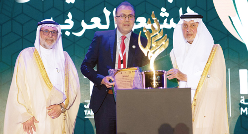 توّج صاحب السمو الملكي الأمير خالد الفيصل مستشار خادم الحرمين الشريفين أمير منطقة مكة المكرمة رئيس أمناء جائزة الأمير عبدالله الفيصل للشعر العربي، الفائزين بجائزة الأمير عبدالله الفيصل للشعر العربي في دورتها الثالثة. وقال الأمير خالد الفيصل في كلمة تحدث فيها عن الأمير الراحل عبدالله الفيصل: «عبدالله الفيصل هو من ربَّاني، وهو قدوتي وهو الذي رعاني طفلاً وشاباً ورجلا، رحمك الله عبدالله الفيصل.. كم أفتقدك» . وتحدَّث أمين مجلس أمناء أكاديمية الشعر العربي رئيس جامعة الطائف الدكتور يوسف عسيري قائلا: « لا يسعني في بداية كلمتي إلا أن أتوجه بالشكر الجزيل إلى صاحب السمو الملكي الأمير خالد الفيصل على ما قدمه للأدب العربي من دعم كبير من خلال أكاديمية الشعر العربي التي تحتضن منحة سموه الكبيرة وهي الجائزة الأكبر و الأهم في الوطن العربي لما تحمله من ميزات وهي الجائزة الأدبية الوحيدة التي تحمل مباركة خادم الحرمين الشريفين الملك سلمان بن عبدالعزيز -حفظه الله- وهي الجائزة التي تحمل اسم شخصية عظيمة حقاً.. وهو اسم الراحل الأمير عبدالله الفيصل -رحمه الله- وكذلك لضخامة الجائزة حيث تقدم جوائز بقيمة مليون ونصف المليون ريال سعودي». وأشار إلى أن الجائزة تحمل الصفة الأكاديمية، وتحتضن جامعة الطائف هذا الشرف،إذْ تهتم الجامعة بإحياء فروعها التي واجهت صعوبات عدة لتأتي الجائزة وبشهادة كبار المتابعين لتنشط مجال القصيدة المُغنَّاة والشعر المسرحي، وكذلك الجائزة الأدبية التي تفردت بتكريم المبادرات التي تخدم الشعر العربي، لافتاً النظرإلى أنه سوف يضاف إلى فروع الجائزة فرع جديد، وهو فرع جائزة الديوان الشعري وقيمة جائزته «200 ألف ريال» لتصبح فروع الجائزة خمسة فروع ابتداء من العام القادم، معرباً عن شكره لوزارة الثقافة الراعي الرسمي لهذه الجائزة.