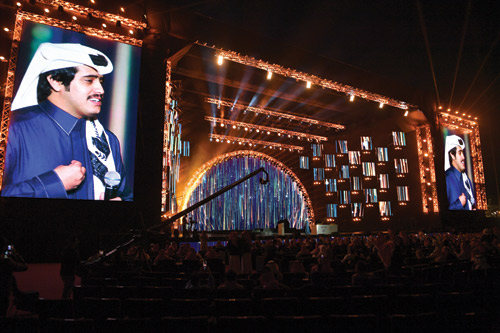وحضر الشاعر الراحل مساعد الرشيدي بقصيدة «علموا مظنون عيني عن جديد أخباري.. إن بغى يشمت بحالي وإن بغى يا ويلي» عندما صدحت في أرجاء المسرح، واختتمها بـ»عسى ما بخاطرك شي علينا».