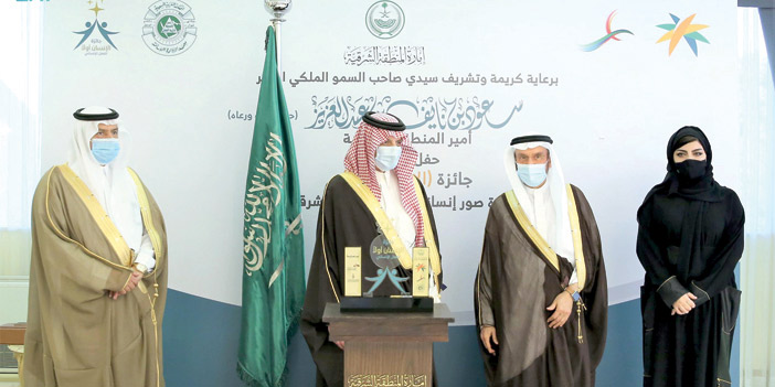 كرّم صاحب السمو الملكي الأمير سعود بن نايف بن عبدالعزيز أمير المنطقة الشرقية بالإمارة أمس، الفائزين بجائزة «الإنسان أولاً» للعمل الإنساني بالمنطقة الشرقية 2021 التي انطلقت بالتزامن مع اليوم العالمي للعمل الإنساني ونظمها فرع وزارة الموارد البشرية والتنمية الاجتماعية بالمنطقة. وأكد سموه أن المملكة تهتم بالأعمال الإنسانية، وهذا موروث متأصل بها حيث تقوم بإغاثة المنكوبين والفقراء والمحتاجين في جميع أنحاء العالم بغض النظر عن الدين والعرق والجنس، عاداً سموه ما يقوم به مركز الملك سلمان للأعمال الإنسانية دليلاً على التوجه الإنساني للمملكة.