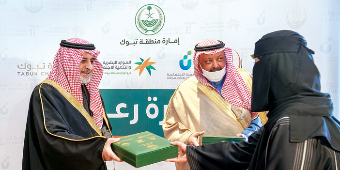 وكان حفل التدشين بدئ بتلاوة آيات من القرآن الكريم، ثم ألقت هند الفاضلي كلمة قالت من خلالها إن هذه المبادرة تساهم بشكل مباشر في تحقيق الاستدامة وتقليل العشوائيات في البيع على الطرق العامة، منوهة بدعم سمو أمير منطقة تبوك، ورعايته وتدشينه لهذه المبادرة. وفي ختام الحفل سلم سموه المستفيدين والمستفيدات من هذه المبادرة مفاتيح نقاط البيع الخاصة بهم.