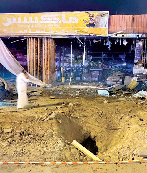 وبين أنه تم على الفور انتقال فرق الدفاع المدني وجهات الاختصاص للموقع، واتضح أنه عبارة عن سقوط مقذوف عسكري على أحد المحال التجارية في الشارع العام، نتج عنه حالتا وفاة لمواطن ومقيم من الجنسية اليمنية، وإصابة (7) مدنيين، وهم (6) مواطنيين ومقيم من الجنسية البنجلادشية بإصابات خفيفة ومتوسطة نتيجة تطاير الشظايا، تم نقلهم إلى المستشفى لتلقي العلاج اللازم، كما تضرر محلان تجاريان و(12) مركبة بأضرار مادية إثر الشظايا المتطايرة.