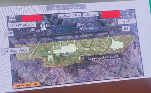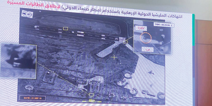 استعرض الناطق الرسمي باسم قيادة القوات المشتركة للتحالف العربي لدعم اليمن العميد تركي بن صالح المالكي الأهداف العسكرية التي تم استهدافها في مطار صنعاء وبعض المواقع في الكهوف والمنشآت المدنية.. كما قدم شرحاً وافياً أمام الملحقين العسكريين ووسائل الإعلام عن بداية الحرب في اليمن والجهود التي بذلت لإنهاء هذه الحروب العبثية التي تقوم بها المليشيات الحوثية وبترتيب وتخطيط من إيران وحزب الله اللبناني منذ بداية 2014 وحتى الآن، والجهود من قبل التحالف والأمم المتحدة والمجتمع الدولي لإنهاء هذه الحروب والرجوع إلى المسار السلمي التفاوضي.