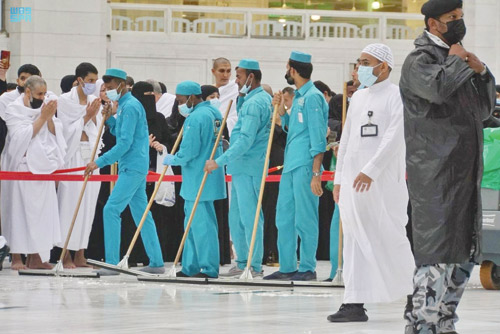 وأوضح وكيل الرئيس العام للخدمات والشؤون الميدانية وتحقيق الوقاية البيئية محمد بن مصلح الجابري، أنه قد تم تهيئة صحن المطاف والمصليات والمداخل والمخارج فور وقوف الأمطار، بتكثيف الجهود لإزالة آثار الأمطار، من أجل المحافظة على سلامة قاصدي المسجد الحرام، ليؤدوا مناسكهم بكل يسر وسهولة، مضيفاً بأن الوكالة قامت بتوزيع معدات شفط المياه ومعدات الغسيل داخل الحرم وخارجه للمساهمة الفعالة في عملية التجفيف، حيث بلغ عدد الآليات والمعدات قرابة 470 آلة ومعدة في صحن المطاف والساحات الخارجية وسطح الحرم.