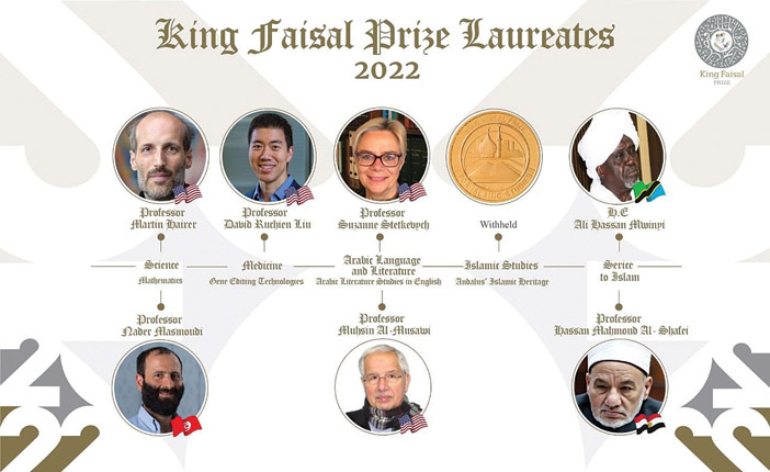 شهد مستشار خادم الحرمين الشريفين أمير منطقة مكة المكرمة رئيس هيئة جائزة الملك فيصل صاحب السمو الملكي الأمير خالد الفيصل، حفل إعلان الفائزين بجائزة الملك فيصل للعام 1443هـ - 2022م.
