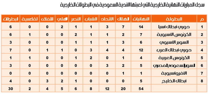 إجمالي النهائيات الخارجية.. تفوق هلالي