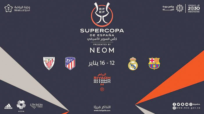 تتجه أنظار عشاق كرة القدم في العالم هذه الليلة نحو العاصمة السعودية الرياض, وتحديداً إلى درة استاد الملك فهد الدولي لمتابعة «كلاسيكو العالم» بين فريقي الإمتاع والإبداع والإبهار برشلونهة» بطل كأس إسبانيا «وريال مدريد» وصيف بطل الدوري «الإسبانيين اللذين سيلتقيان وجهاً لوجه عند الساعة 10:00 مساء في أولى مباريات نصف نهائي كأس السوبر الإسباني.
