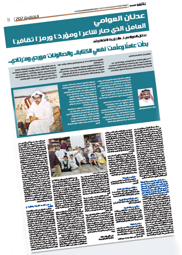 شرفني الأستاذان إبراهيم التركي، رأس تحرير الجزيرة الثقافية، ومحمد الهلال رسولها الأمين؛ بأن خصصا لي ملف عدد المجلة المرقم (707)، فاشتمل على كلمات وقصائد لذوي قامات كبيرة شامخة: جاسم الصحيح، خليل الفزيع، محمد الجلواح، عبدالله الرستم، محمد القشعمي، عبدالرحيم الأحمدي، يوسف الحسن، عبدالله العبدالمحسن، الدكتور حسن البريكي، ناجي الحرز، صالح الصويان، عبدالله الحركان، هؤلاء الأساتذة جلهم صديق عمر: