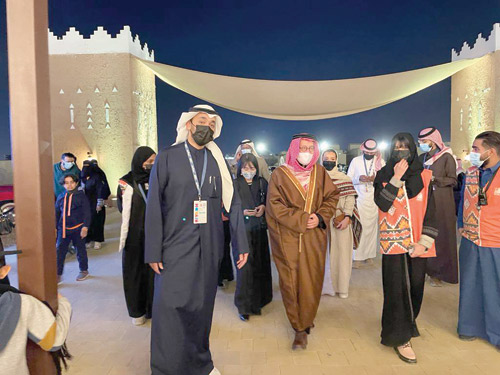 نشر السفير الياباني لدى السعودية، فوميو إيواي، مقطع فيديو وصورا توثق زيارته وزوجته لـ «قرية زمان» شمال الرياض، ومشاركته في احتفال أدى خلاله رقصات سعودية تقليدية. وعلى حسابه في «تويتر»، نشر السفير فوميو إيواي صورة له ولزوجته خلال زيارة القرية مرتدين الزي السعودي، وقال معلقًا: «قمت بزيارة إلى قرية زمان هذه الليلة برفقة أم كوجي، وهذه القرية تحت إدارة الجمعية العربية السعودية للثقافة والفنون». وأضاف السفير «سرني مشاهدة الجهود المبذولة للحفاظ على التقاليد والفنون التراثية في المملكة، وأنا على يقين بأن التقدم الحقيقي يتماشى مع القيم والتراث الأصيلة في كل المجتمعات».