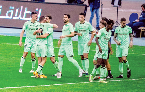 ضرب أتلتيك بلباو حامل اللقب موعدا مع ريال مدريد في نهائي كأس السوبر الإسباني، بعد ان حول تأخره من أتلتيكو مدريد بهدف الى فوز مثير بنتيجة 2-1، مساء امس في المباراة التي جمعت الفريقين على استاد الملك فهد الدولي بالعاصمة السعودية الرياض، وفي الدقيقة 62، سجل أتلتيكو مدريد هدف التقدم بواسطة أوناي سيمون لاعب بلباو بالخطأ في مرماه، قبل ان ينتفض لاعبو بلباو في الربع ساعة الأخيرة من ربع المباراة، وسجلوا هدفين متتاليين، قلبوا بهما الطاولة على أتلتيكو مدريد.، جاء هدف التعادل بتوقيع اللاعب براز ألفاريز في الدقيقة 77، وسجل نيكو ويليامز الهدف الثاني في المقدمة بعدها بـ4 دقائق فقط، ليتأهل أتلتيك بلباو إلى نهائي كأس السوبر الإسباني لمواجهة نظيره ريال مدريد، الأحد.