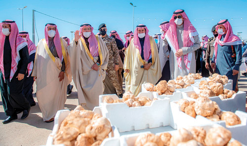 وأبدى سموه فخره بتنوّع المهرجانات والمنتجات الزراعية التي تنتجها المنطقة، لافتاً سموه بأن مهرجان الفقع الأول، يأتي استجابة وتحقيقًا لرغبة المزارعين والمهتمين بهذا المنتج، كونه يستزرع بالمحميات، ويتم ريّه بالوقت المناسب له.