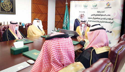 دشن صاحب السمو الملكي الأمير سعود بن نايف بن عبد العزيز أمير المنطقة الشرقية بمقر الإمارة أمس, مهرجان «كلنا الخفجي» في نسخته التاسعة، بحضور المحافظ محمد الهزاع، وأعضاء اللجنة المُنظمة.