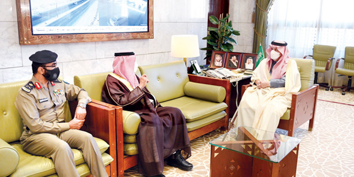 من جهة ثانية استقبل سمو أمير منطقة الرياض في مكتبه بقصر الحكم أمس مدير الدفاع المدني بالمنطقة اللواء الدكتور محمد بن عبدالعزيز أبو عباة، بمناسبة تعيينه في منصبه. وأعرب سموه عن تمنياته له بالتوفيق والنجاح فيما كلف به، منوهًا بالأعمال التي يضطلع بها الدفاع المدني، وضرورة العمل باستمرار لتطويرها وضمان السلامة للجميع.