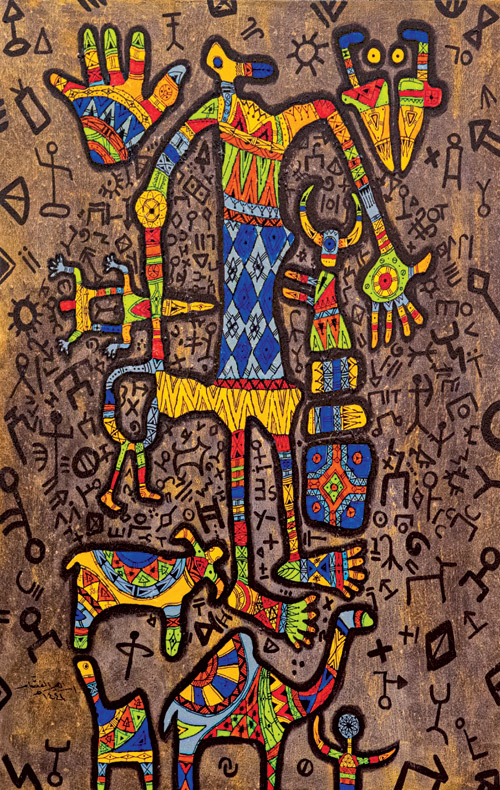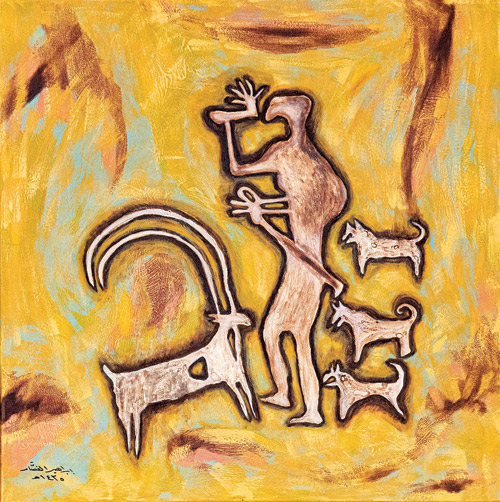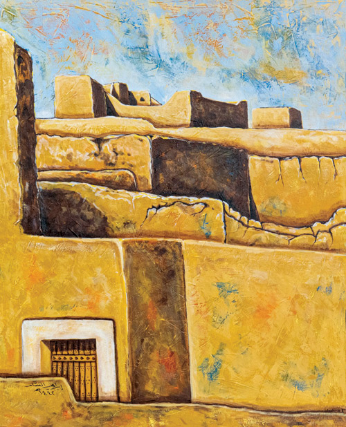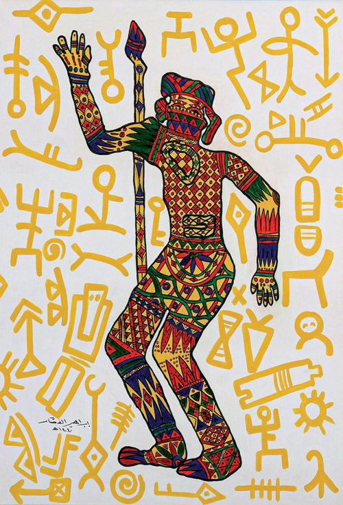 ومن النقاط المفصلية في حياته الفنية وجوده ضمن الوفد المرافق للمعرض التشكيلي الخليجي في الشارقة، حيث صادف فناناً ألمانياً لا يذكر اسمه وعرض هذا الفنان عدداً من اللوحات مستمدة من عنصر أثري واحد، فكان ذلك دافعاً له لاستخراج آلاف العناصر الأثرية وترجمتها فنياً بأعمال تشكيلية إبداعية تحمل روحه الفنية.