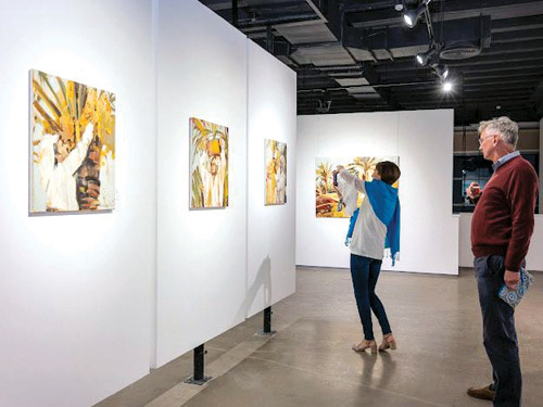 عرضت الفنانة 22 عملاً تكونت من ورق الذهب والنحاس والفضة وألوان الزيت وغيرها من الخامات لتشكل هذا المزيج الفني الرائع.