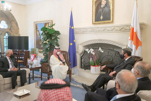 استقبل فخامة الرئيس نيكوس أناستاسياديس رئيس جمهورية قبرص، أمس، صاحب السمو الأمير فيصل بن فرحان بن عبدالله وزير الخارجية، وذلك في القصر الرئاسي بالعاصمة نيقوسيا.