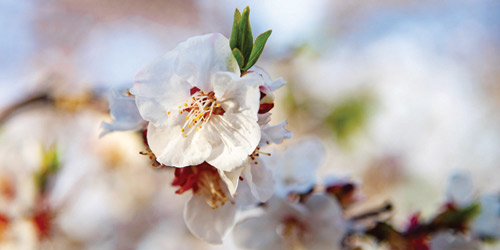 تكتسي مزارع وبساتين المشمش في محافظة الطائف بالبياض وهي المرحلة التي تعرف قبل نهاية موسم الشتاء بـ»الفضيض».