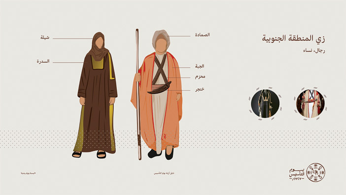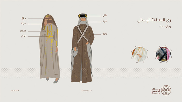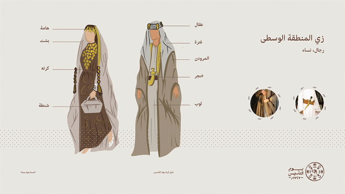 ولأننا نعيش اليوم ذكرى ذلك التأسيس فلابد أن تعود بنا الذاكرة بإطلالة مشرقة على الأزياء الوطنية التي حافظ عليها الآباء والأجداد لنستعرضها اليوم مع الأبناء والأحفاد ونعرف بها من خلال الرسوم والصور التي ميّزت كل منطقة من مناطق المملكة منذ عصر التأسيس.
