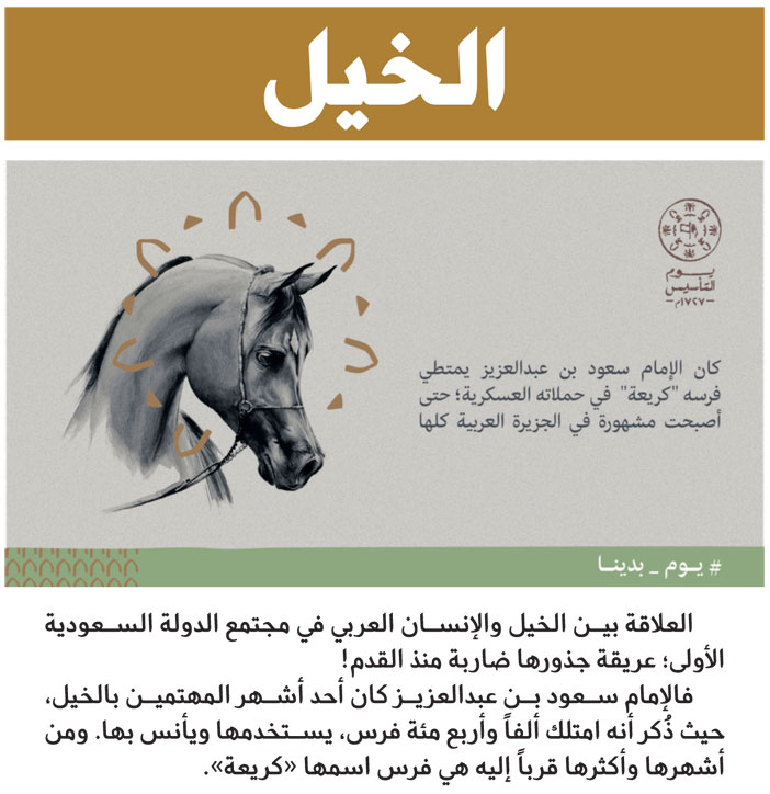 واعتزازاً بالجذور الراسخة لهذه الدولة المباركة وارتباط مواطنيها الوثيق بقادتها, في هذه الأيام تعيش بلادنا أجواء هذه الذكرى العطرة (ذكرى تأسيس الدولة السعودية) وهي مناسبة خالدة ووقفة عظيمة تعي فيها الأجيال قصة أمانة قيادة ووفاء شعب، ونستلهم منها القصص البطولية التي سطرها الأمام محمد بن سعود - رحمه الله -.