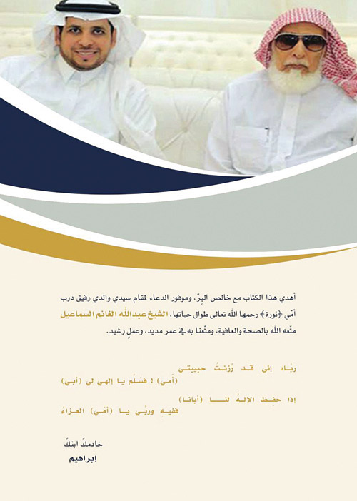 وأحببت أن أهم هذه السادات وكأنها واحد هو الذي بين يديك الآن. مع امتناني للدرَّة العالية أم عبد الله بن علي المسند، وشقيقتي لولو سلمها الله، التي كانت تراجع لي مشكورة إلا أنه قبل نشرها مشيرة علي بما تراه الأصح تاريخيا والآن إلى تقدير المشاعر، ومراعاة الخواطر، فلها مني جزيل الشكر، وقد شرفني الأخ الكبير معالي الاستاذ الدكتور علي بن إبراهيم النملة - حفظه الله تعالى - بقراءة الكتاب، وأكرمني معاليه بالتقديم له، شكر الله له ما عمل به، وبارك في علمه وأهله وشأنه كله، ورحم والديه وزوجه وكل عزيز لديه، شاكرا لكم إخوتي وأخواني تكرمكم بقراءة كلماتي عن أغلى من عايشت وأعز من فقدت أمي نورة رحمها الله، وبارك في ذريتها، وحفظ لنا والدي الكريم الشيخ عبد الله الغانم السماعيل، الذي عايش فقيدتنا المترجم لها في هذا الكتاب كما لم يعايشها أحد غيره.