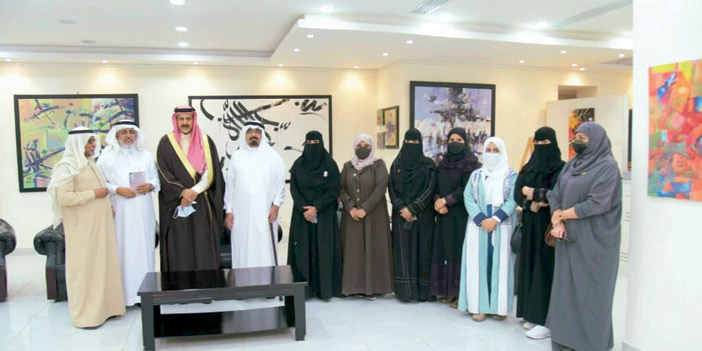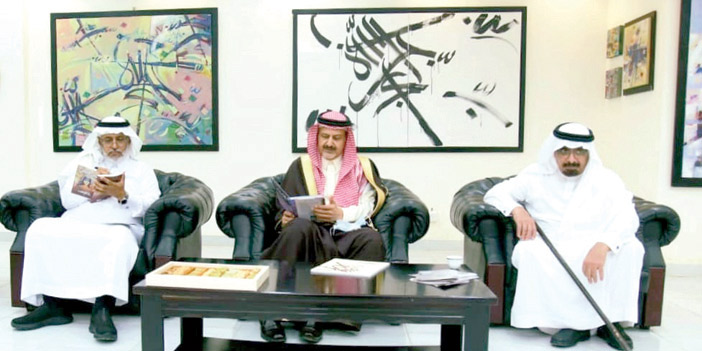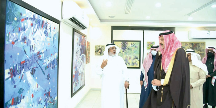 وبدأ سمو الرئيس الفخري والضيوف بجولة في المعرض التشكيلي استعرض من خلالها الفنان ناصر الموسى أعماله الفنية وتجربته التشكيلية على مدى سنين طويلة بصحبة جملة عظيمة كانت أساس جل أعماله وهي (الله أكبر) لتكون هي العنصر الرئيس في أعماله ويتشكل من حولها إبداعه الفني