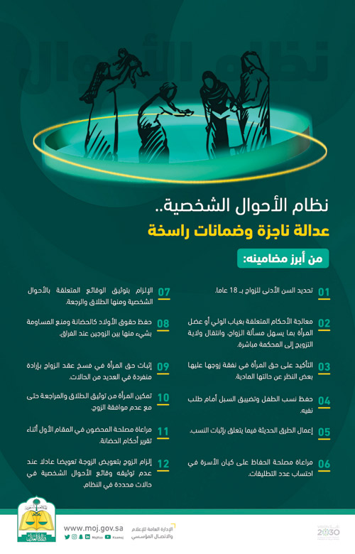 وبيّن معالي وزير العدل أن نظام الأحوال الشخصية بمضامينه الشاملة؛ سيسهم في صون كيان الأسرة وحقوقها ومراعاة مصالحها، وتأطير العلاقة بين أفرادها.